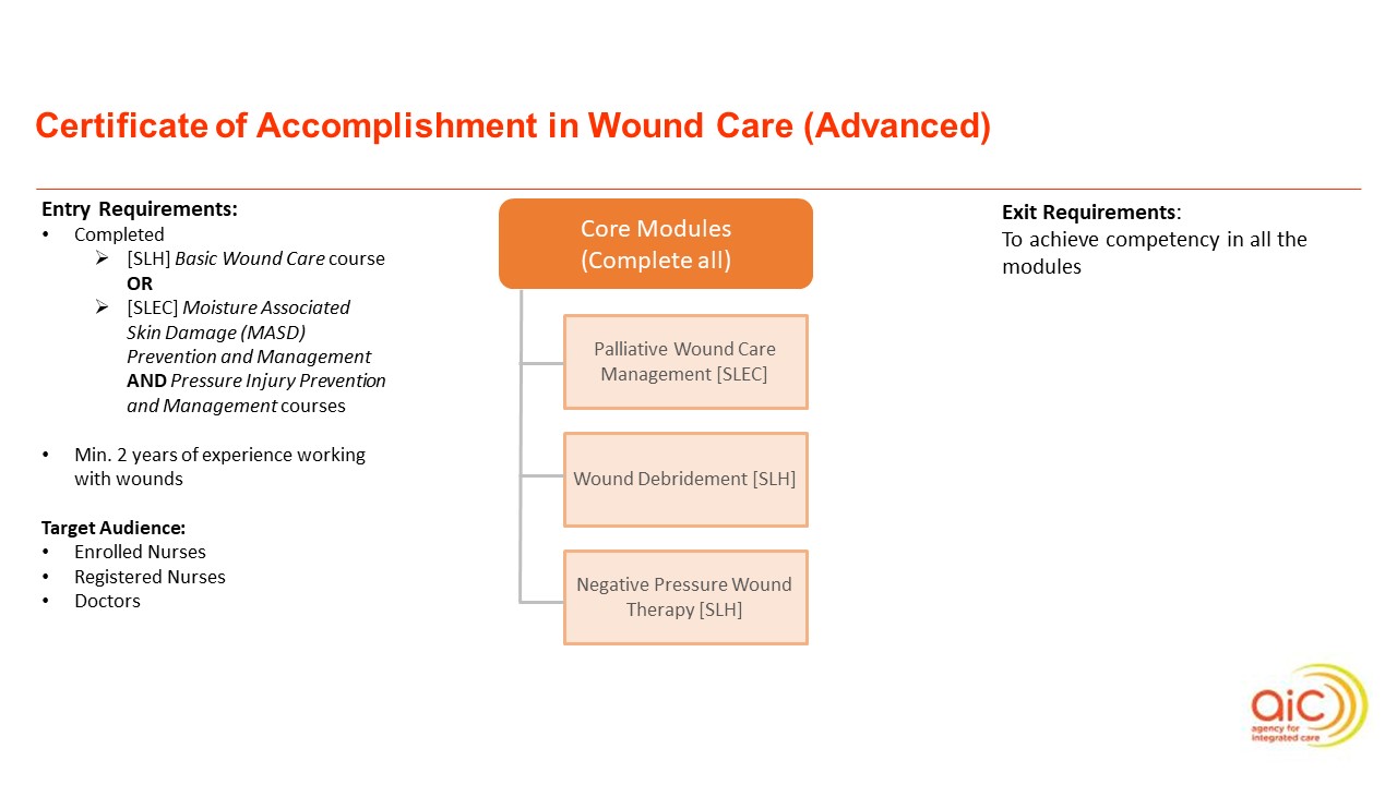 Learners may proceed to acquire further knowledge and skills in wound care management and receive the Certificate of Accomplishment.