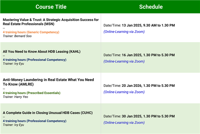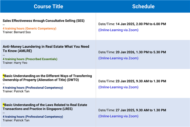 [4-PC] Basic Understanding of the Laws Related to Real Estate Transactions and Practice in Singapore (LRES) - 9.30am to 1.30pm via Zoom