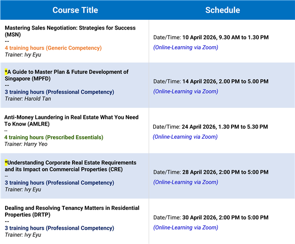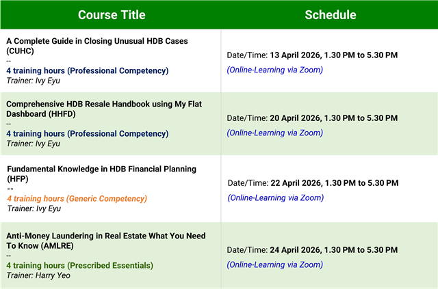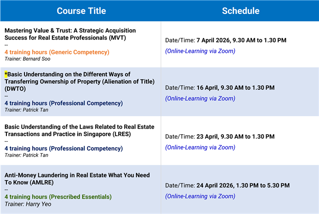 [4-PC] Basic Understanding of the Laws Related to Real Estate Transactions and Practice in Singapore (LRES) - 9.30am to 1.30pm via Zoom