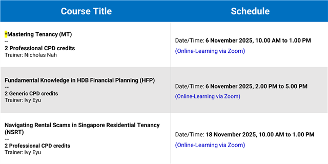 [Zoom Professional] Navigating Rental Scams in Singapore Residential Tenancy (NSRT) - 10am to 1pm Nov